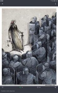 Après une nuit en geôle, JM accompagné de son avocate est auditionné par une capitaine de police qui lui reproche d’avoir insulté des représentants de l’État en ayant déposé une pancarte sur la permanence de la député En Marche (ou crève) Brulebois. JM ne garde pas le silence (comme le droit l’y autorise aussi) et répond aux questions de la policière, lui expliquant entre autres qu’il a participé à une manifestation qu’il croyait déclarée et qu’il ne fait pas partie de organisateurs. La policière lui fait copieusement la morale et rédige un PV d’audition qui après relecture de l’avocate, s’avère faux ! Il indique que JM reconnaît avoir participé à une manifestation non déclarée. Devant la vigilance de l’avocate, la représentante des intérêts de l’État fait machine arrière et corrige son « erreur ». JM sera encore brièvement auditionné dans la matinée avant d’être relâché dans l’après-midi, le procureur en a décidé ainsi et la suite se jouera au tribunal, où nous l’espérons JM bénéficiera du soutien dont il aura besoin.